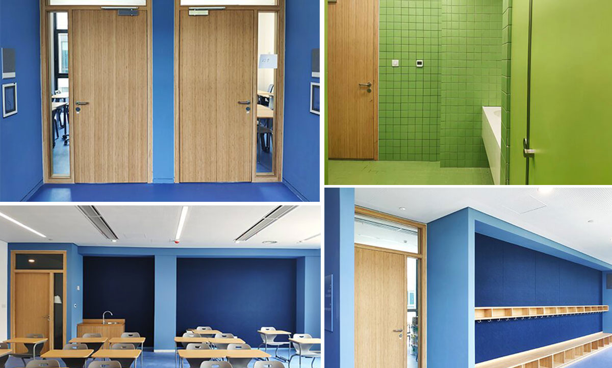 Stable, safe, excellent quality, eco-friendly doors School is a paradise for children's growth and an ocean of knowledge. Here, kids play and grow with their classmates, and work hard with their teachers to learn. Here, teachers work, and they contribute their youth and energy here. School is the most beautiful place in the world, and we do our best to provide safe, quiet, and reassuring doors. One of our Project example: Puyang Jianye International school boasts about 3000 students and an area of 150,000 square meters, we provided doors to the classrooms, offices, domitories, etc. If you are interested in school doors, please feel free to contact us, and we will customize according to your requirements. You name it, we have it. |